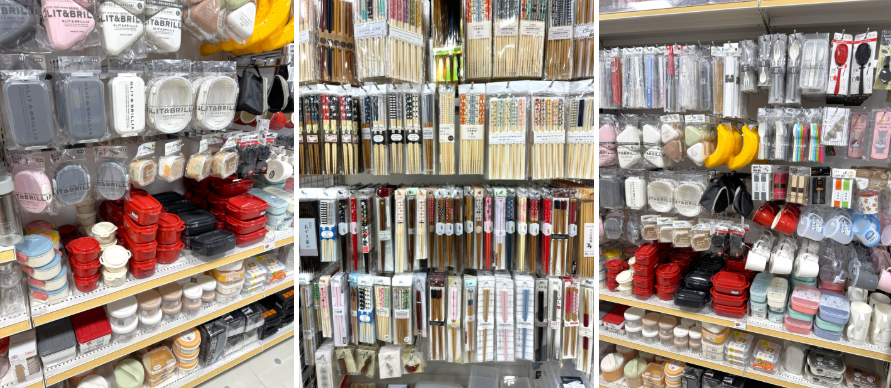 3층에 올라가자마자 도시락 용품, 그릇, 젓가락, 주방 도구 코너가 바로 눈에 들어왔어요.