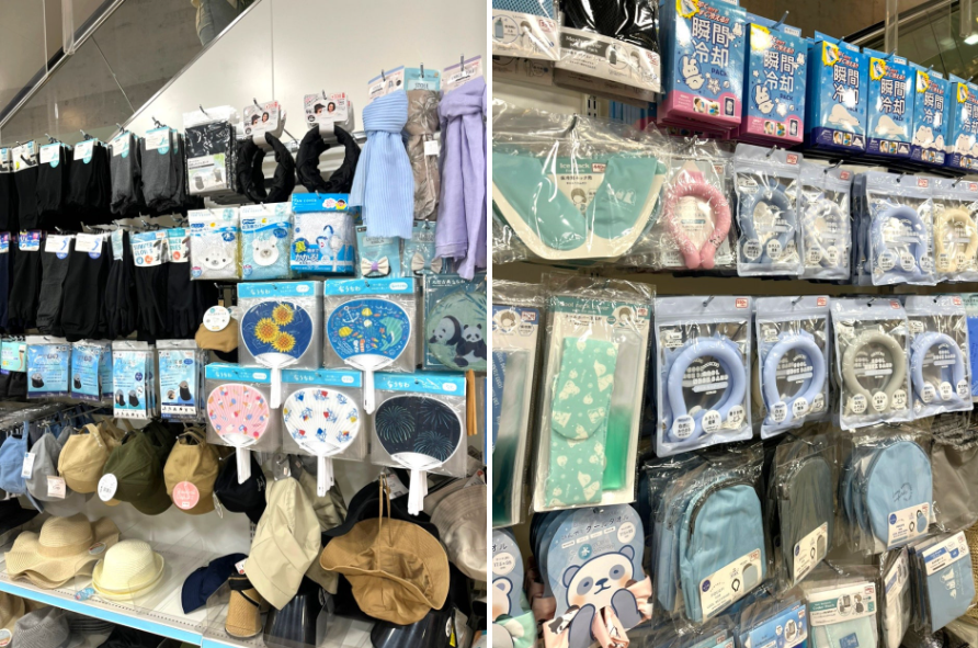 부채, 손풍기, 쿨팩 같은 여름 필수템들이 진열돼 있어서 계절감을 확실히 느낄 수 있었답니다!