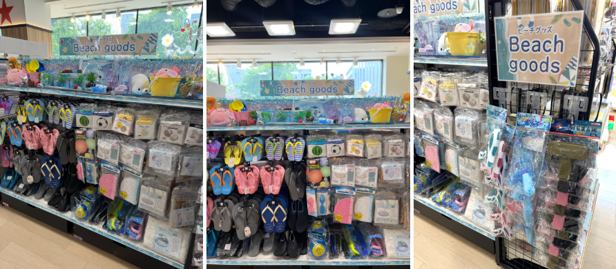 먼저 2층 입구에 들어서자마자, 다가오는 여름을 겨냥한 시즌 아이템들이 눈에 띄었어요.
