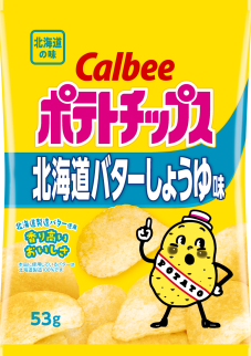 칼비 포테이토칩( 北海道バターしょうゆ味 )은 홋카이도에서 생산한 버터를 100% 사용하고,