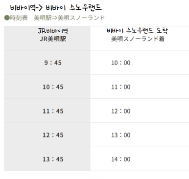 스노우랜드 → 비바이역 : 예약 없이 탑승 가능