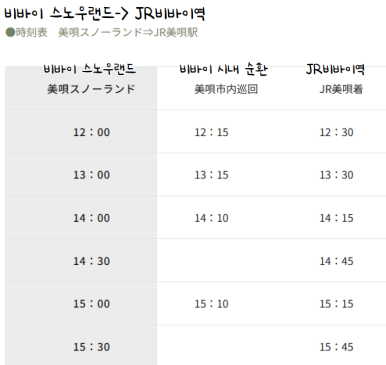 비바이역 → 스노우랜드 : 사전 예약 필수