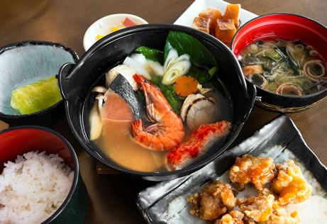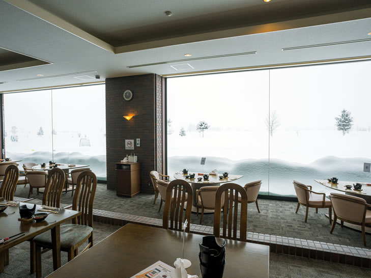 홋카이도 지역 식재료를 활용해서 메뉴를 제공하고 있고 실내에서 설원을 보며 먹을 수 있어요