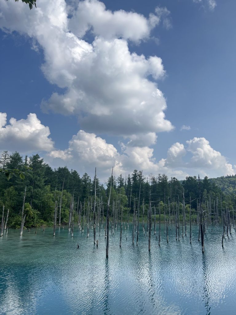 푸른 에메랄드빛을 띄는 청의 호수는 비에이를 대표하는 명소에요