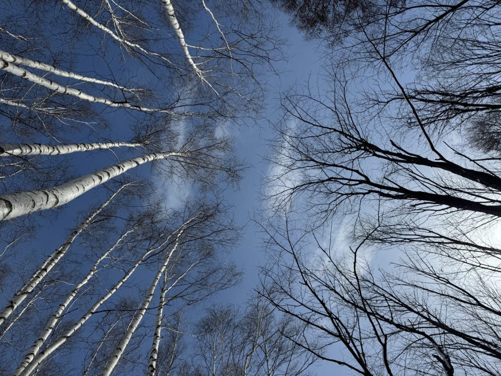 고요한 눈밭에 가득찬 자작나무 숲을 걸으며