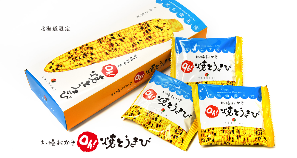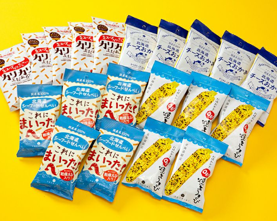 바삭한 쌀과자에 간장 양념을 더하고 구운 옥수수의 풍미를 입혀서 만든 홋카이도 한정 스낵이에요