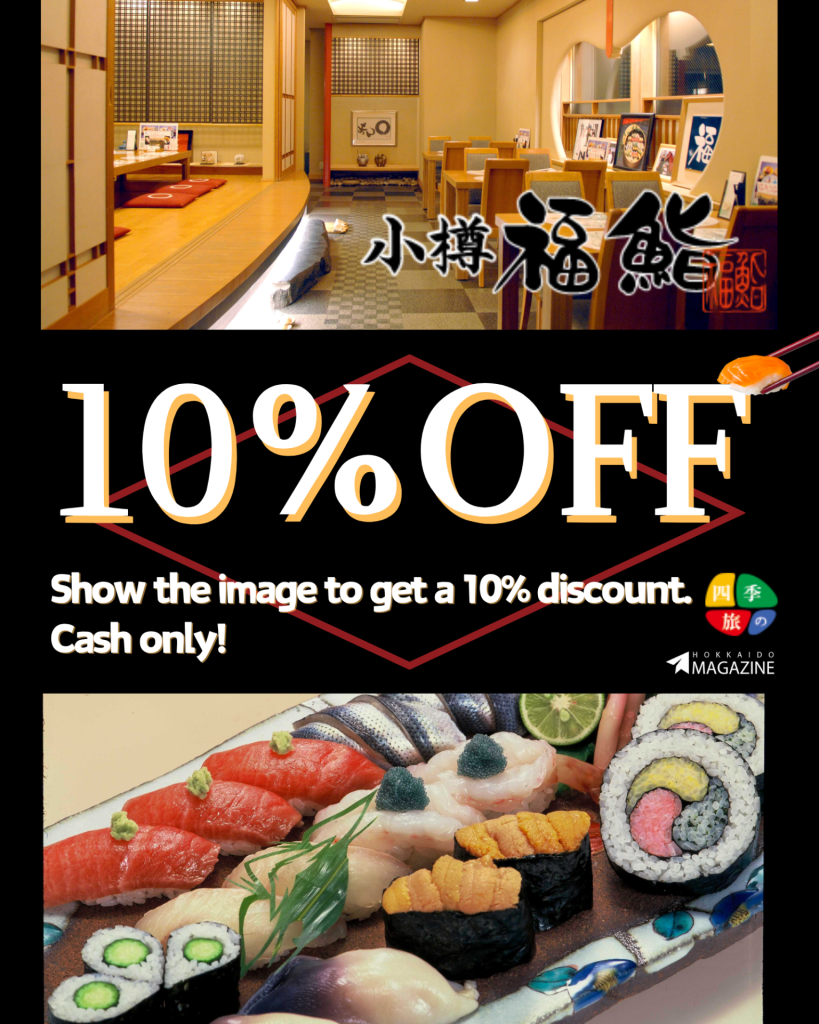 키타이치 글라스, 오타루 오르골당 등등 관광 명소가 즐비한, 사카이마치 거리에 있는 「오타루 후쿠즈시」