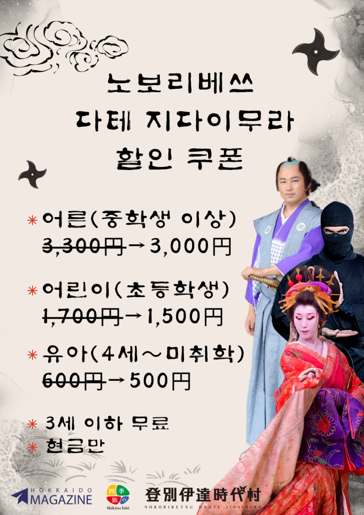 일본에 2곳 밖에 없는 에도 시대를 재현한 관광지가 이곳, 북해도의 노보리베츠에 있습니다!