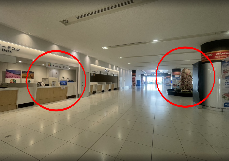 도착출구에서 시키노 타비 투어 데스크까지 10초도 안 걸립니다.