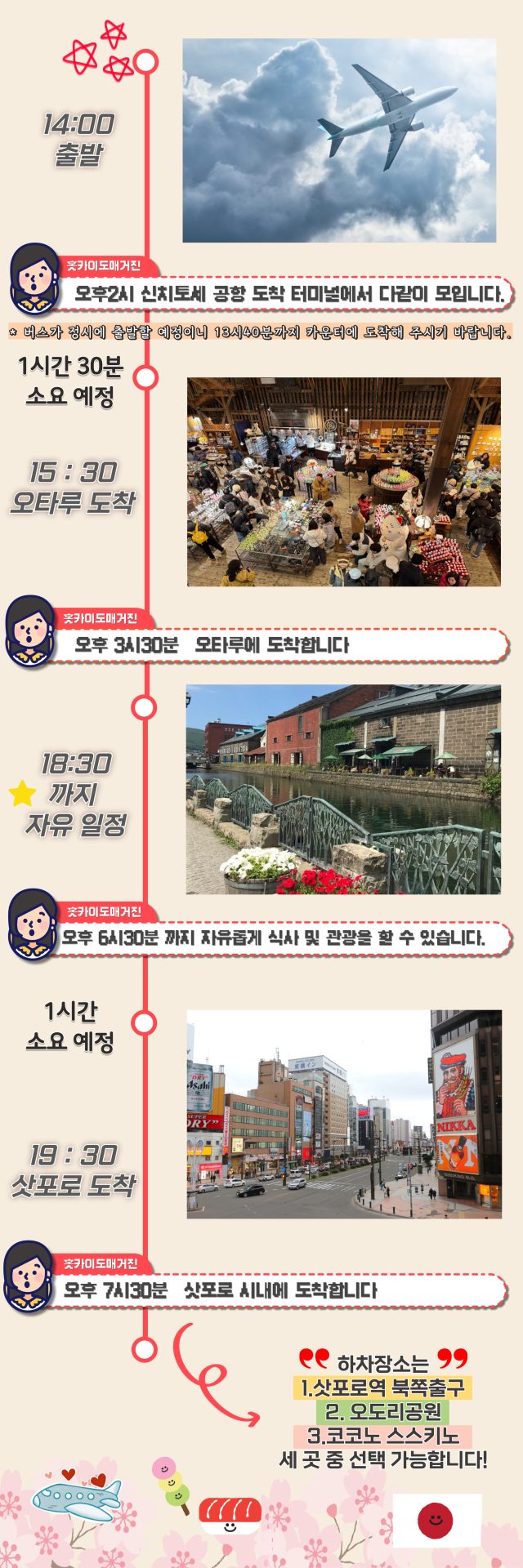 신치토세 공항 국제선 터미널 2층 <shikino tabi 시키노타비 카운터>로 13시 40분까지 모여주세요 🙂