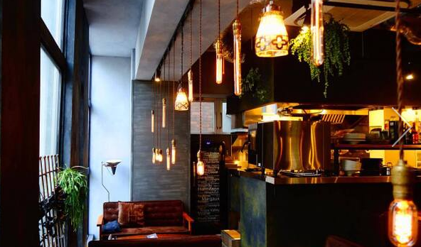 매장도 콘크리트 벽에 검은 샹들리에가 빛나 현대적이고 세련되게 꾸며져 있어요