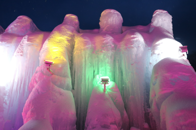 스스키노에서는 투명한 얼음조각상이, 츠도무에서는 가족이 즐길 수 있는