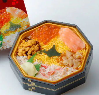 홋카이도의 해산물을 한가득 담은 스시 도시락이에요
