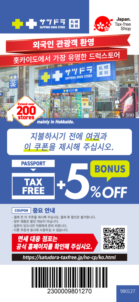 ● 일본 삿포로 최대 인기 드럭스토어 <사츠도라> 쿠폰